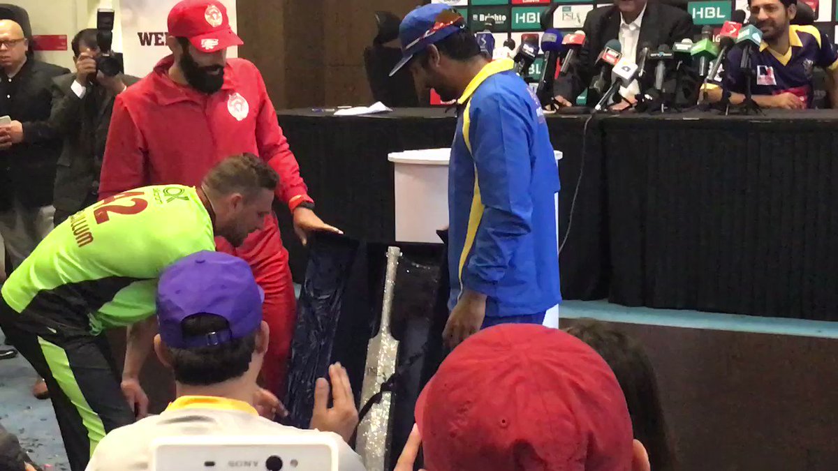 Flanked by the captains, PSL Chairman Najam Sethi said he hoped that the trophy will go to its "rightful home", Gaddafi Stadium in Lahore.